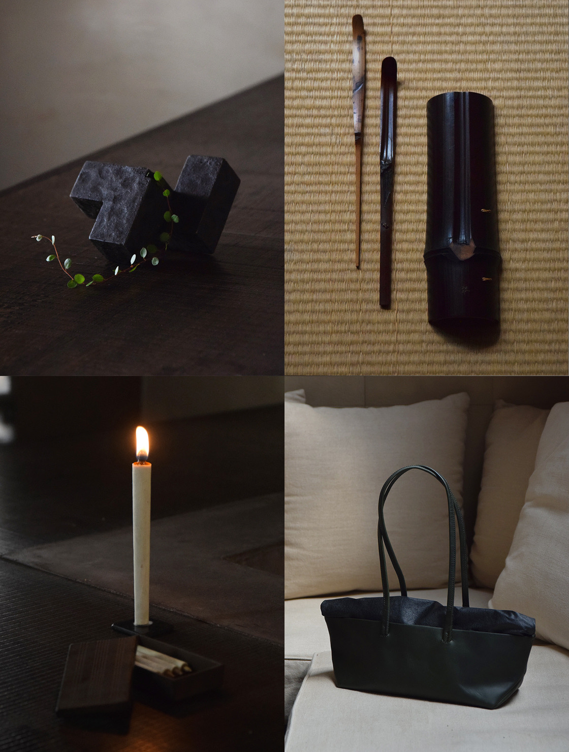 OGATA at The Shinmonzen is pleased to present “Fukiyose,” a special exhibition introducing the works of four artists.Items include uniquely crafted flower vase, tea scoops made of bamboo, candles made with Japanese botanical materials, and signature boat-shaped tote, dyed with tea husk and made with refined leathercraft techniques. Please drop by to peruse the collection, with the backdrop of Kyoto, where the mountains are ablaze with the autumn leaves.