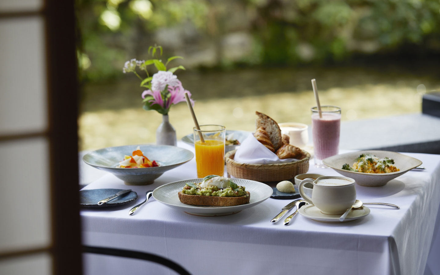 美しい白川の畔に位置するリバーサイドテラスにて、私たちの熟練したパティスリーチームによって精巧に作られた美しいアフタヌーンティーの創作品や、名シェフJean-Georgesによって巧妙にデザインされた魅力的なランチメニューなど、さまざまなジャンルの料理をお楽しみいただけます。革新的なフレーバーと料理の芸術が結集しているジャンジョルジュシェフの料理を味わって頂き、忘れられないダイニング体験をお楽しみください。